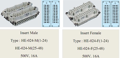 Haevy Duty Connector Sibas Type HE 024 (25 – 48) Haevy Duty Connector Sibas Type HE 024 (25 – 48) Spesifikasi secara umum untuk series ini antara lain : Insert Terminal :Â Â Â Rated Current : 16 Ampere Rated Voltage : 500 V Insert Hood Housing Product