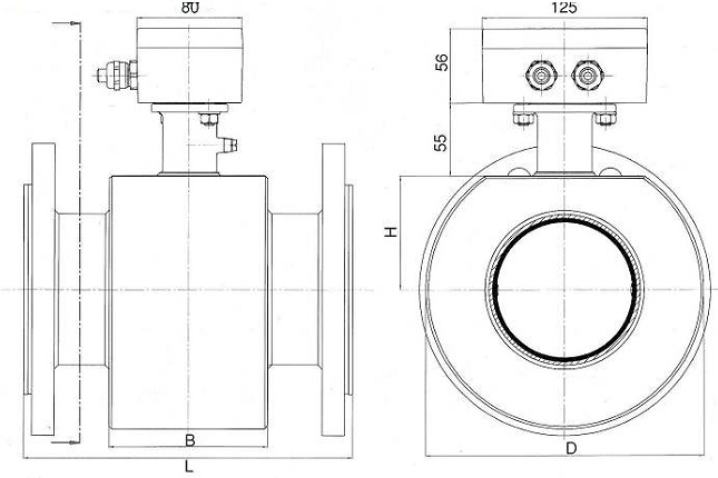 The mag-flux A sensor with PTFE lining is protected using a protective disc. In order to avoid formation of a vacuum,the sensor should be installed at the lowest point of the pipeline. Do not remove or demage the bead of the lining along the flanges.