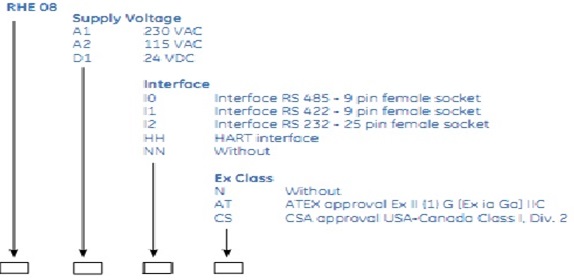 - optional interface RS 422, RS 485, RS 232 or HART